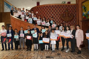 От имени Агентства по защите депозитов КР вручал поощрительные призы Агентства заместитель исполнительного директора Агентства Куленбеков К. Э. победителям — участникам конкурсов в номинациях по написанию лучшего эссе и рисунков в рамках Всемирной недели денег-2019.
