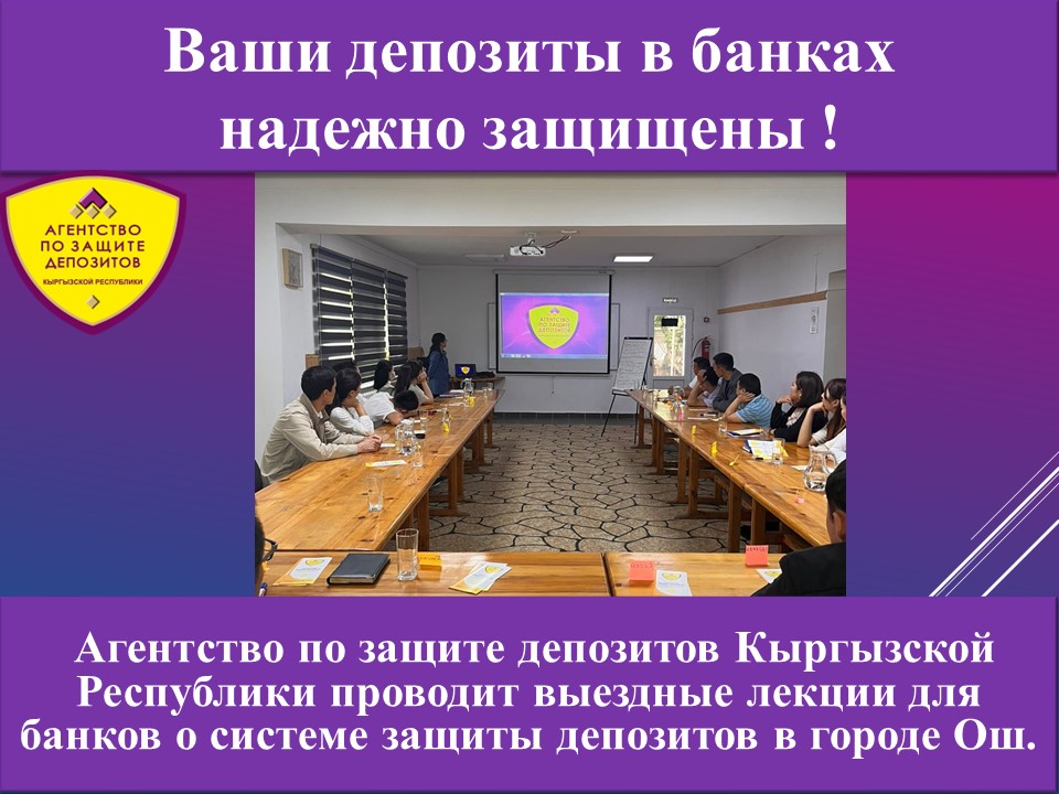 18.05.2023 Агентство по защите депозитов Кыргызской Республики проводит выездные лекции для банков о системе защиты депозитов в городе Ош Агентство по защите депозитов Кыргызской Республики проводит выездные лекции для банков о системе защиты депозитов в городе Ош