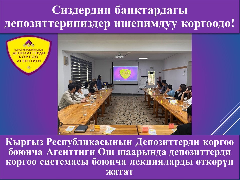 18.05.2023 Кыргыз Республикасынын Депозиттерди коргоо боюнча Агенттиги Ош шаарында депозиттерди коргоо системасы боюнча лекцияларды өткөрүп жатат Кыргыз Республикасынын Депозиттерди коргоо боюнча Агенттиги Ош шаарында депозиттерди коргоо системасы боюнча лекцияларды өткөрүп жатат
