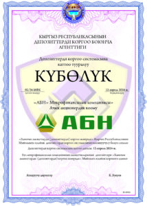 «Банктык аманаттарды (депозиттерди) коргоо жөнүндө» Кыргыз Республикасынын Мыйзамына (мындан ары-Мыйзам) ылайык, «АБН» МФК ААК 2024-жылдын 12-апрелинен тартып Депозиттерди коргоо системасынын катышуучуларынын реестрине киргизилди.